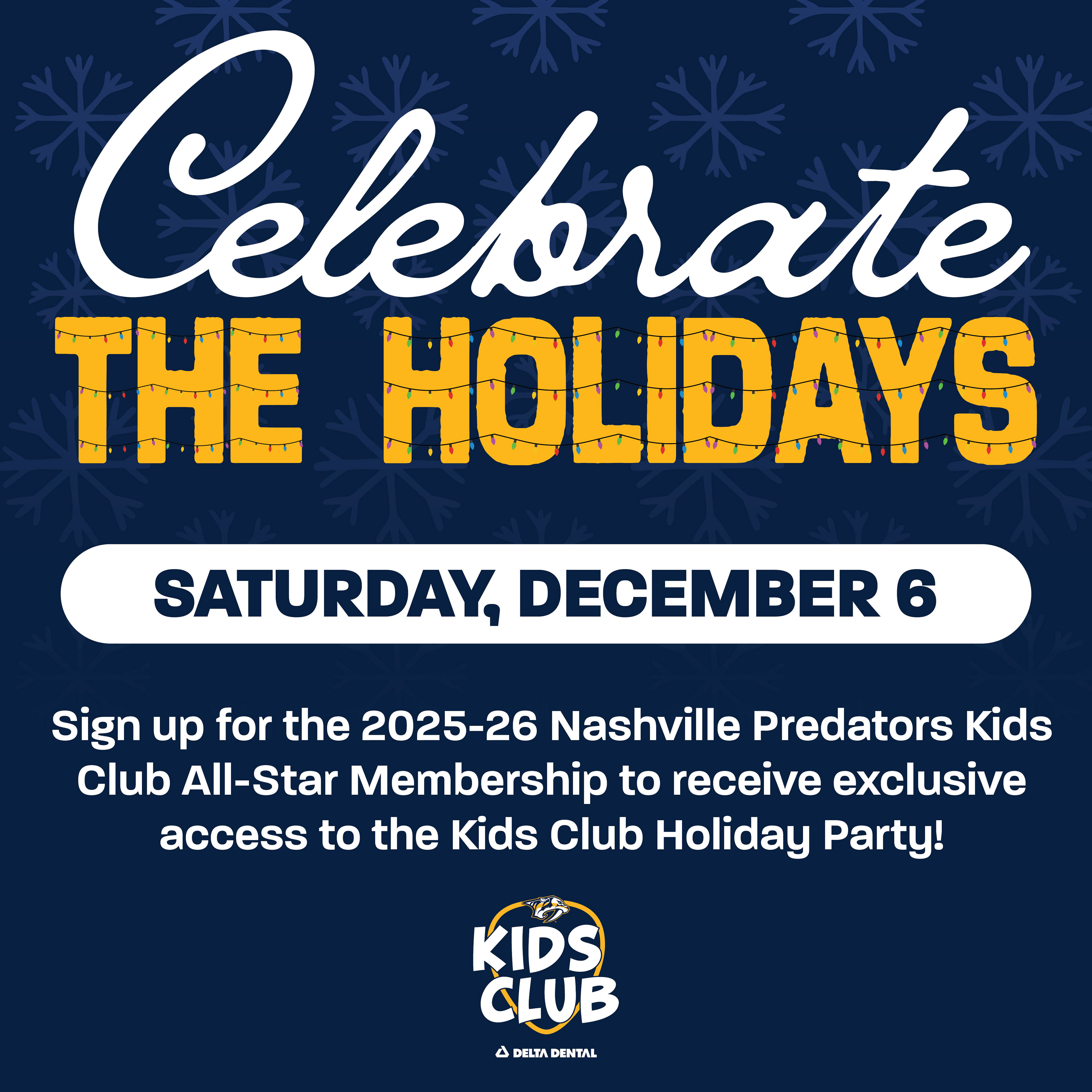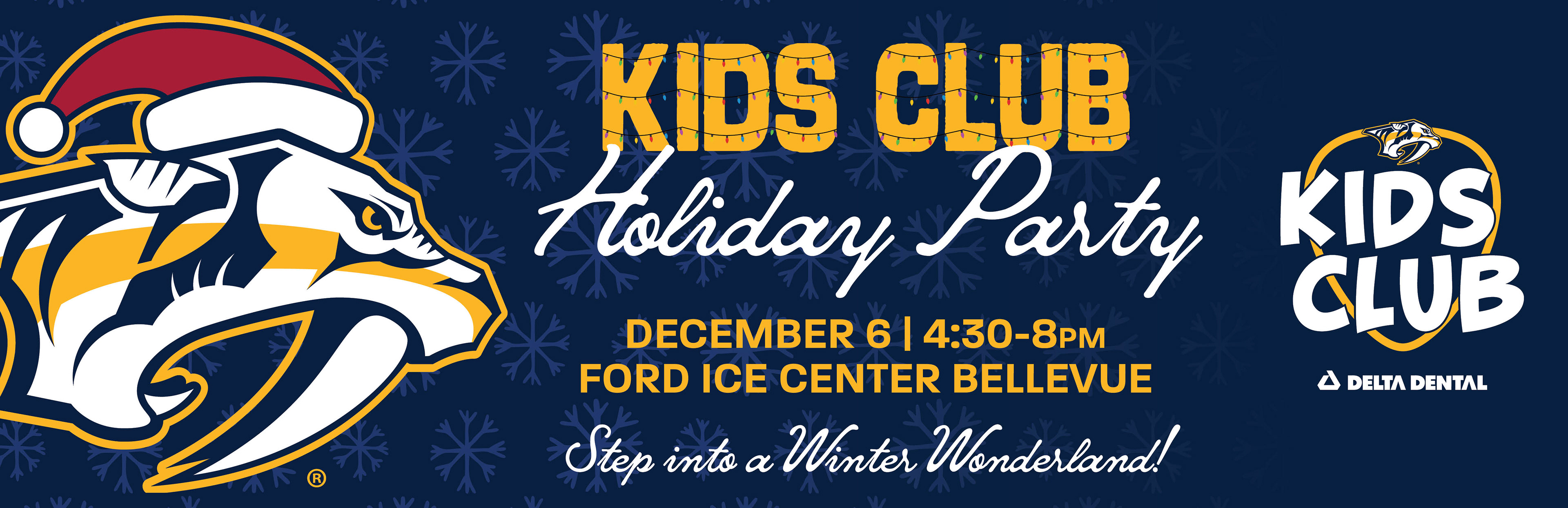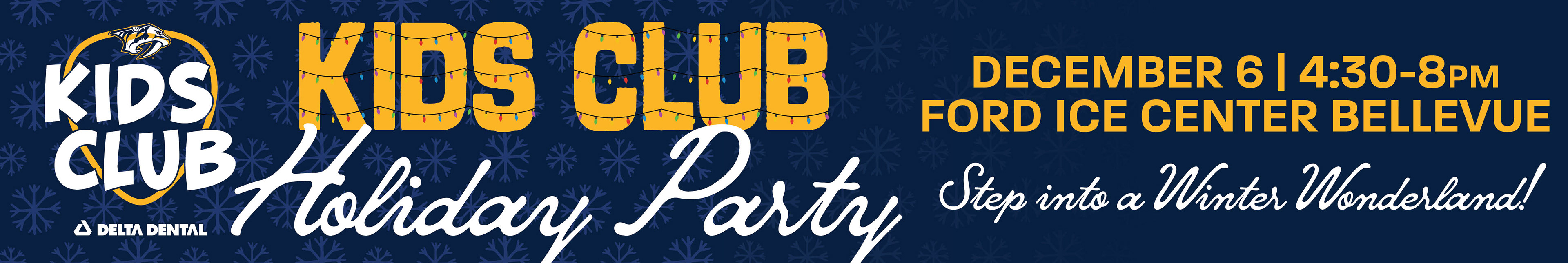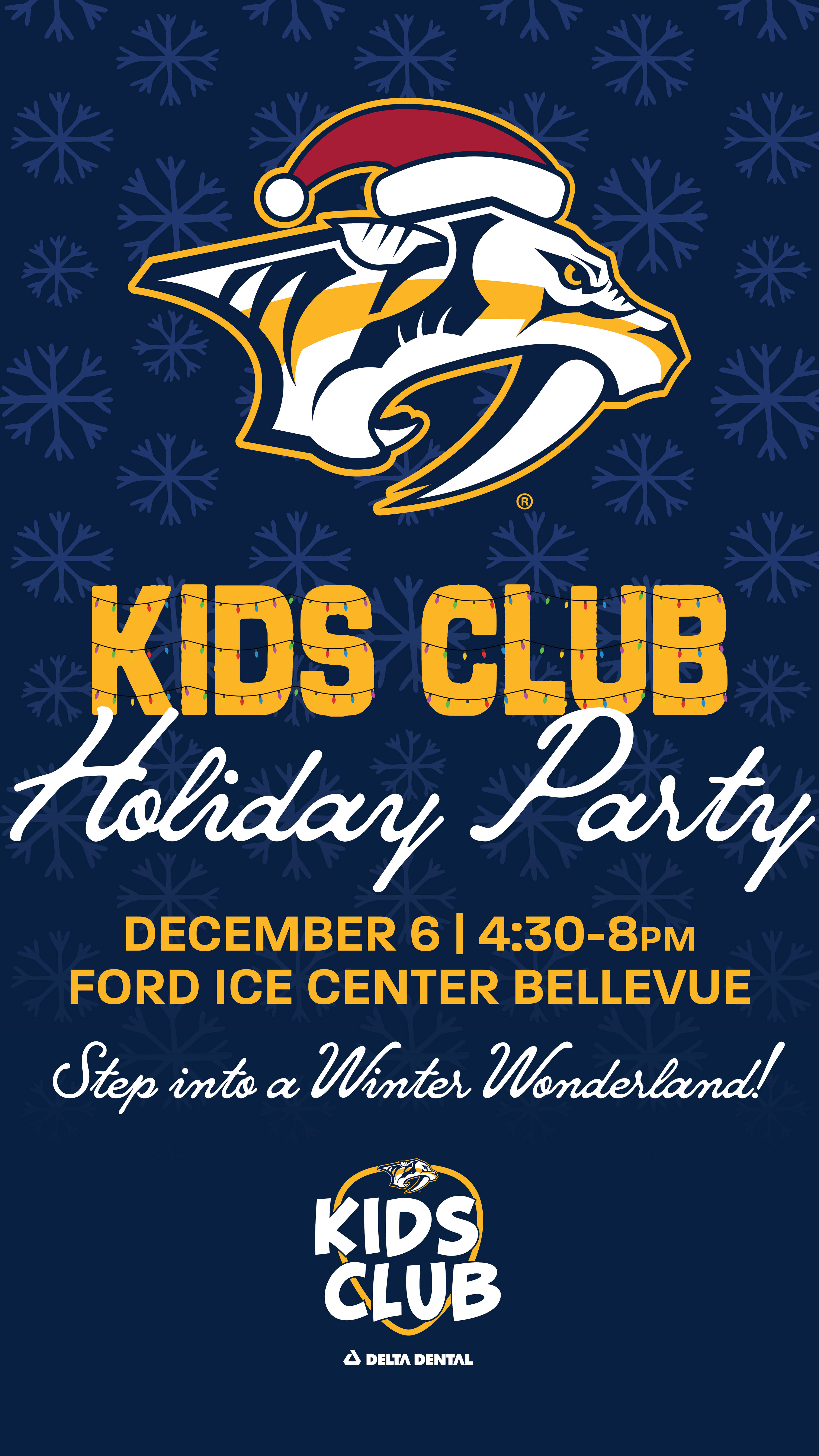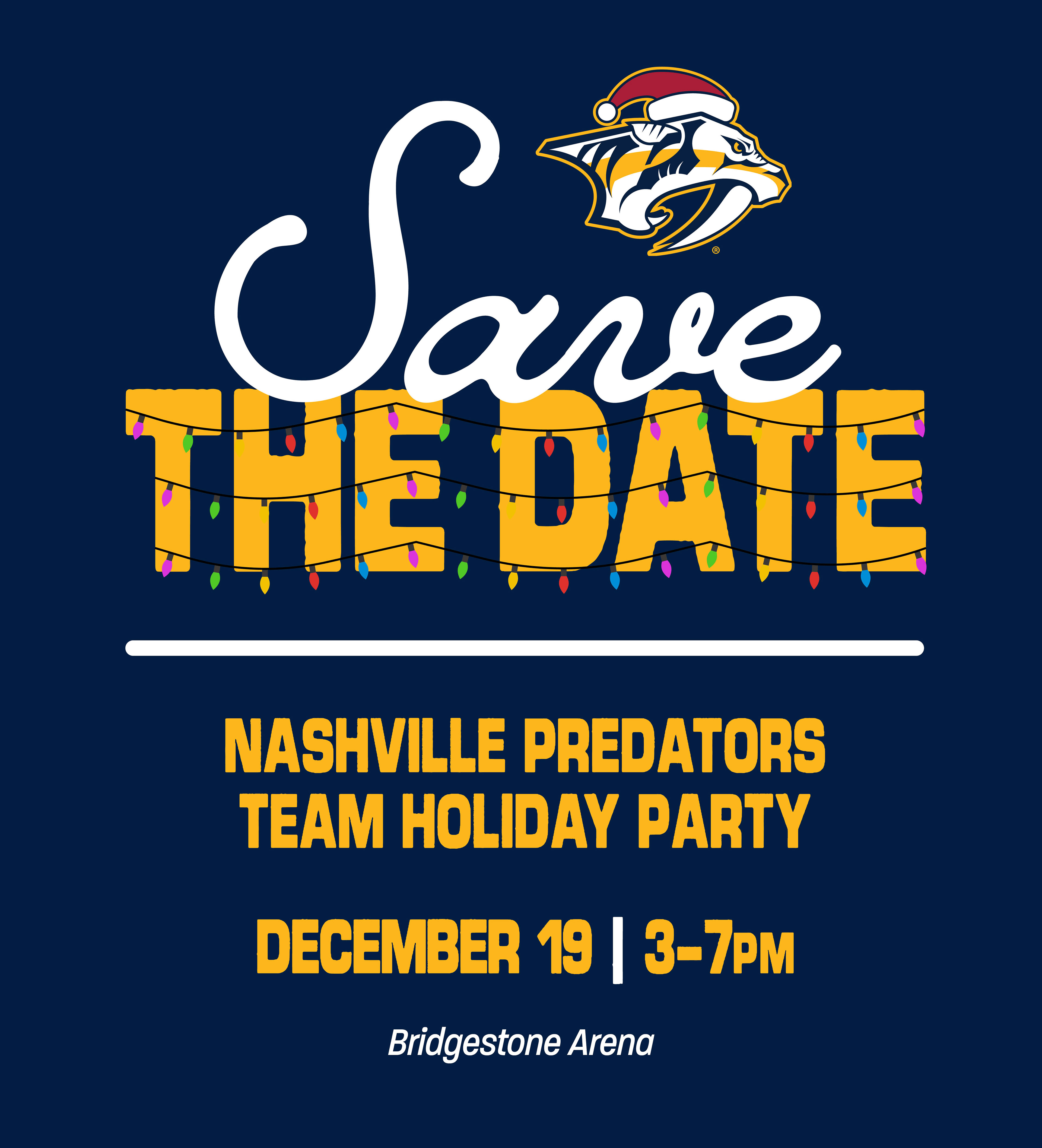 Designed graphics that were sent to the Nashville Predator's team for a holiday team party. I also used the same elements on graphics for our Kids Club Holiday Party graphics.