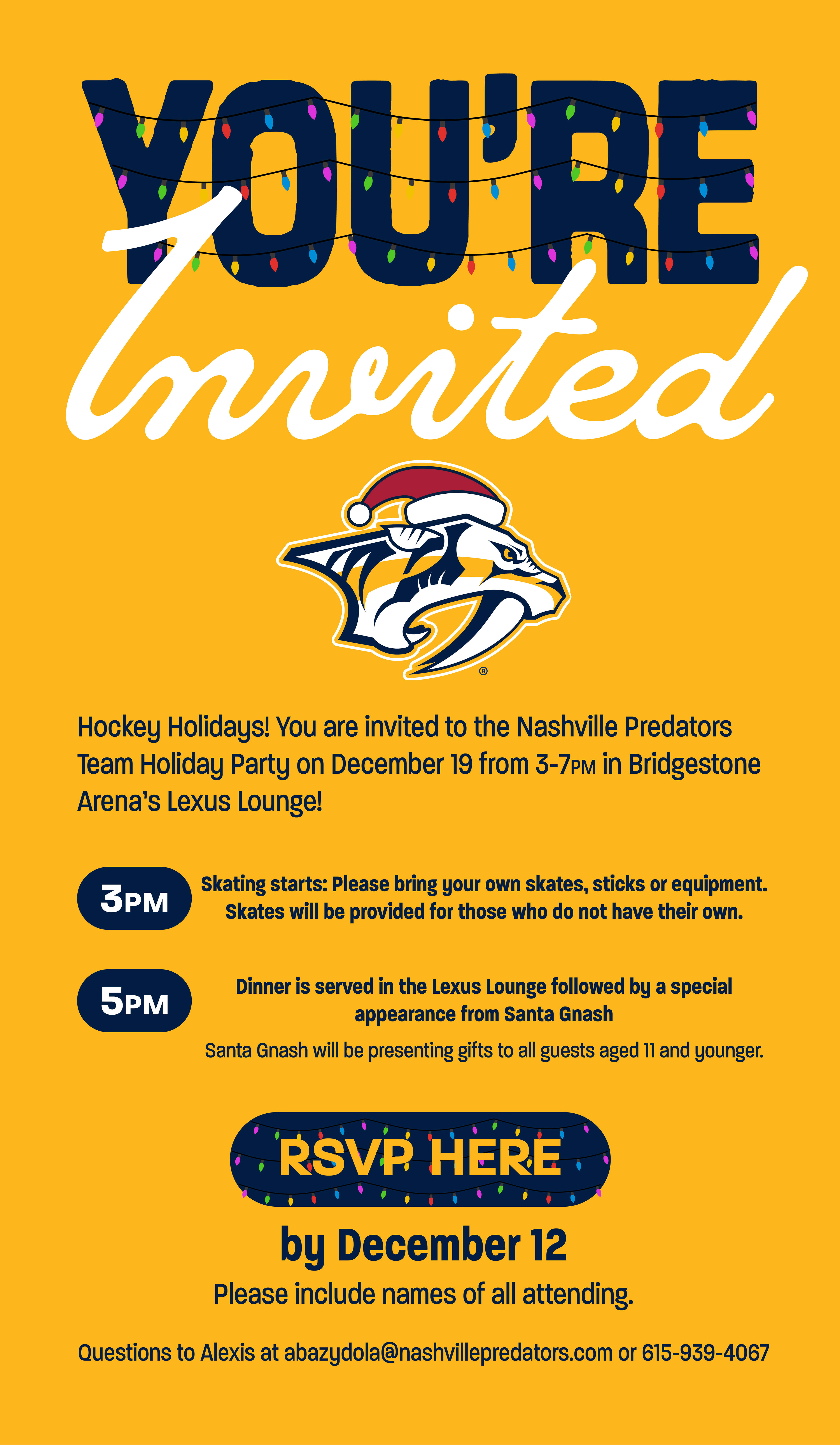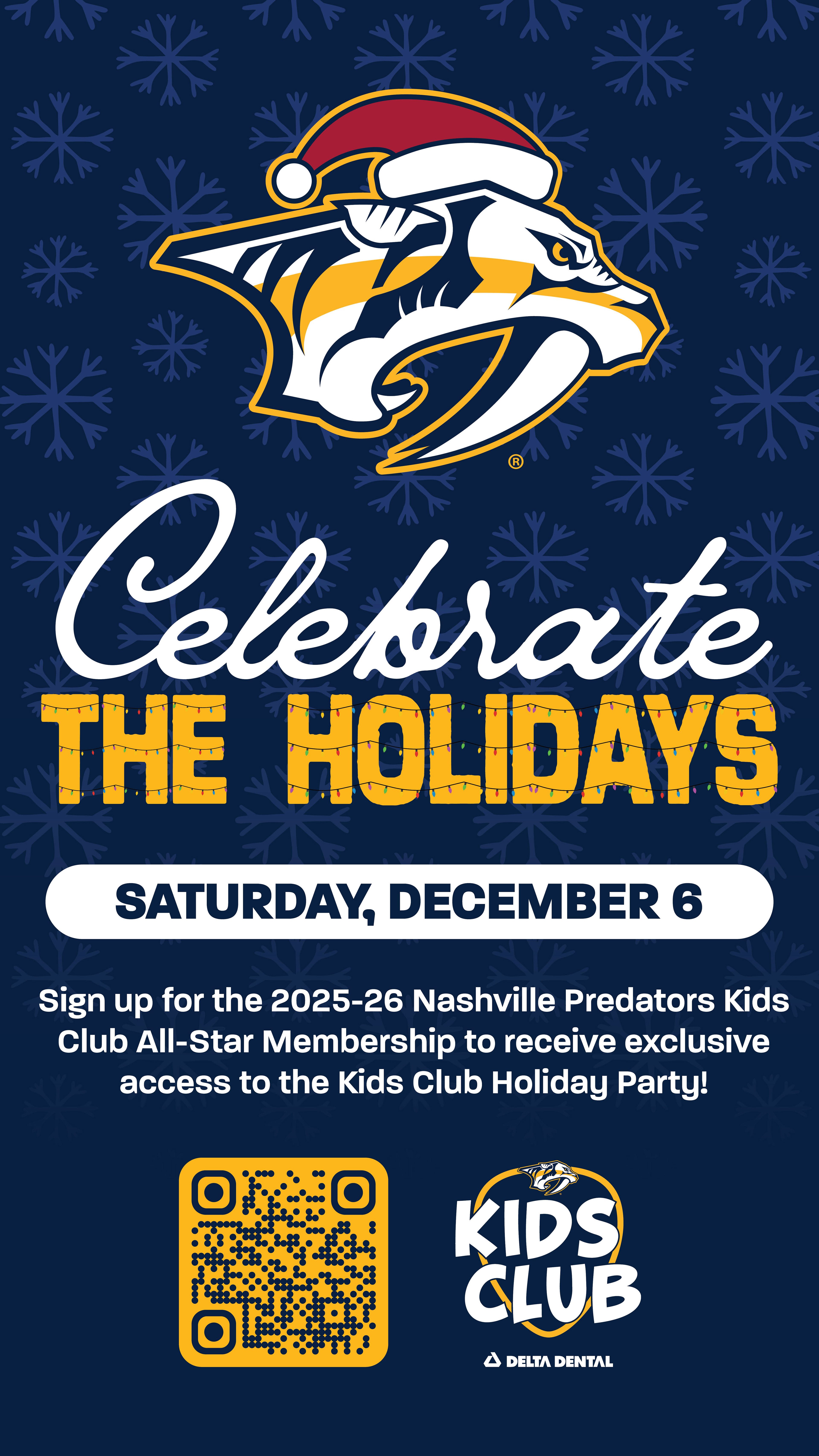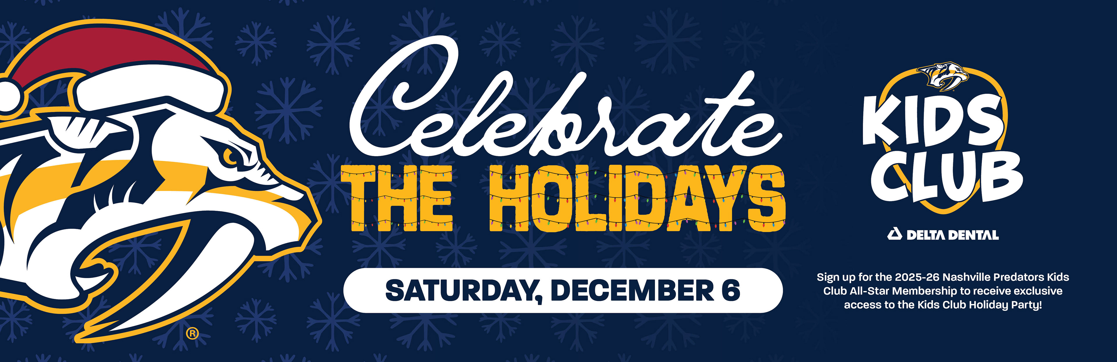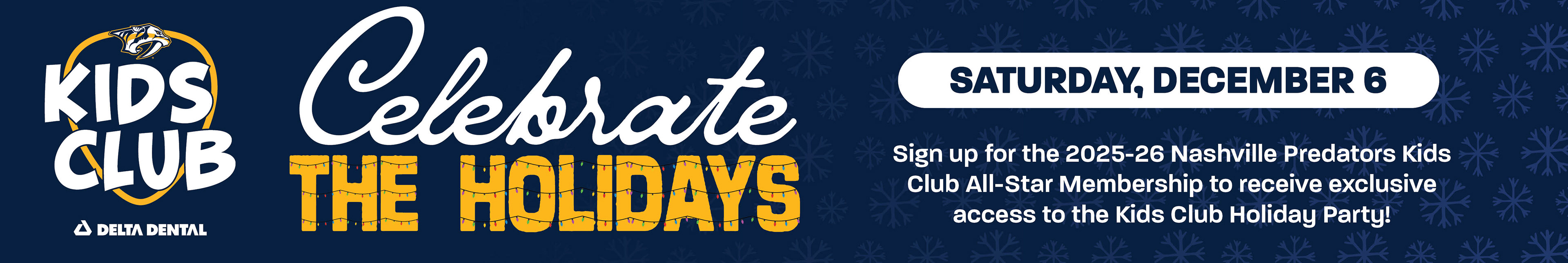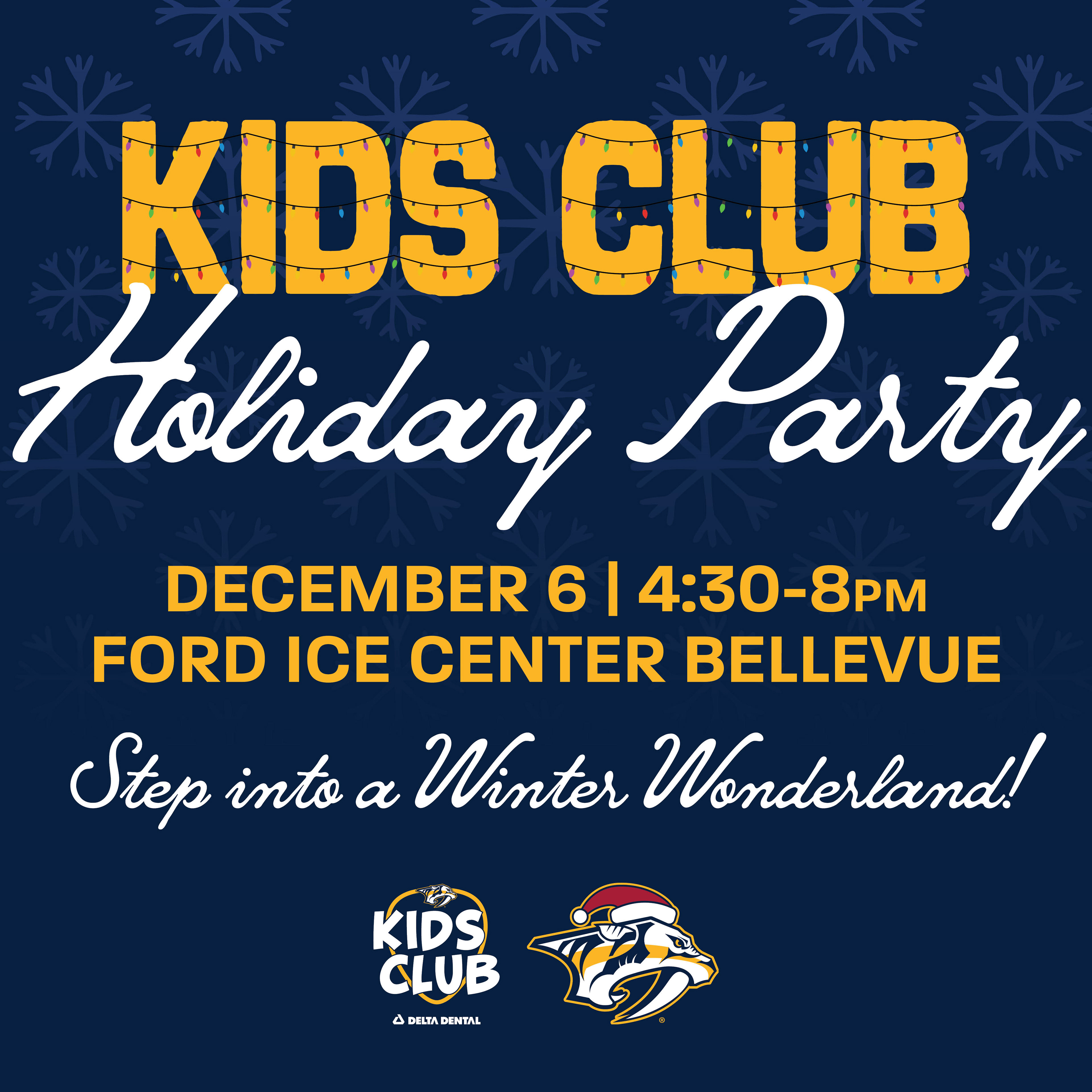 Designed graphics that were sent to the Nashville Predator's team for a holiday team party. I also used the same elements on graphics for our Kids Club Holiday Party graphics.